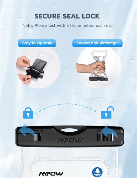 The Mpow 097 Universal Waterproof Case is another great budget-friendly option for protecting your phone from water damage. It is IPX8 certified, providing full submersion up to 100 feet (30 meters) for one hour. The case is compatible with most smartphone models and features a clear window on both sides, allowing you to capture underwater photos and videos without compromising quality.